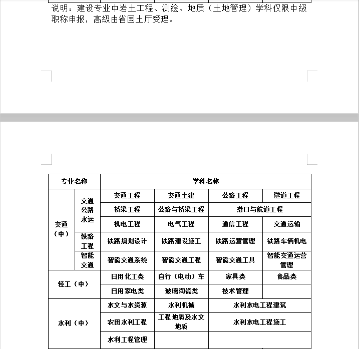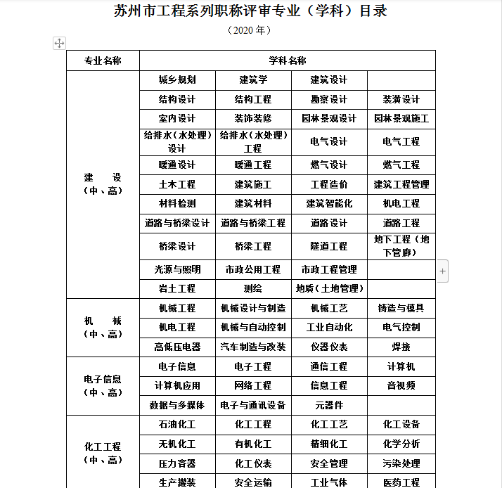 2020年蘇州工程系列職稱評審專業(學科)目錄