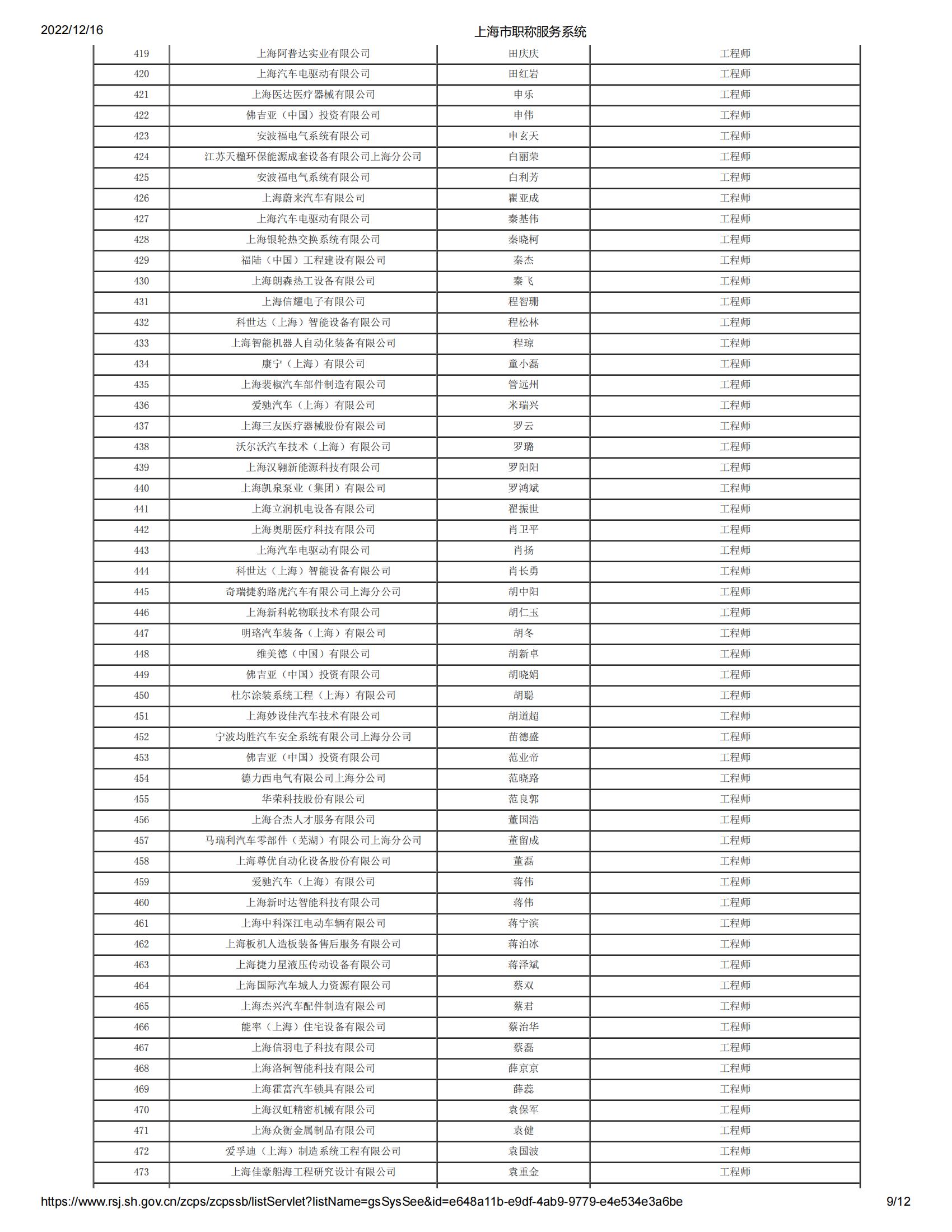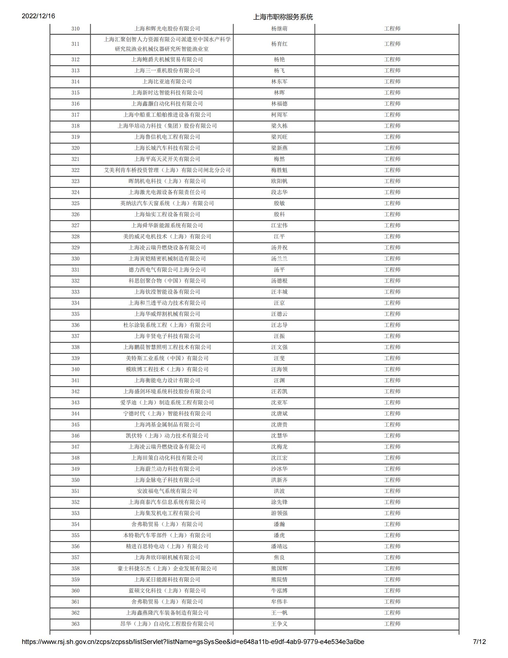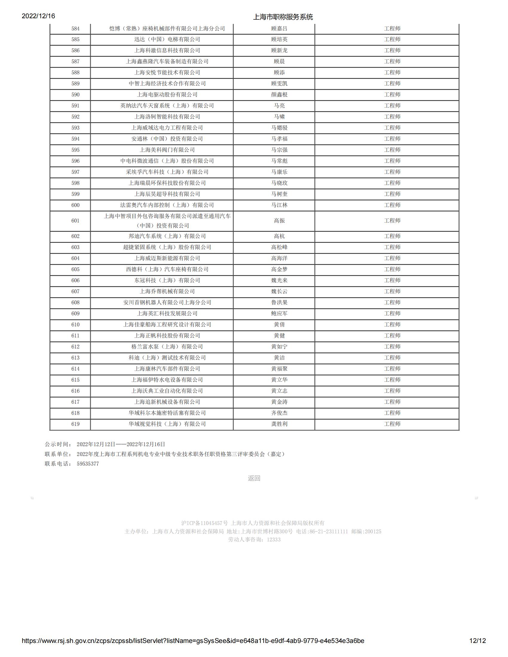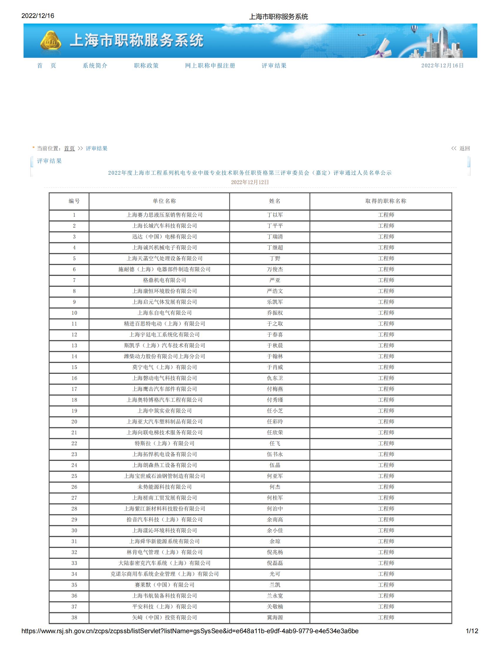2022年度上海市工程系列機(jī)電專業(yè)中級(jí)專業(yè)技術(shù)職務(wù)任職資格第三評(píng)審委員會(huì)(嘉定)評(píng)審?fù)ㄟ^(guò)人員名單公示