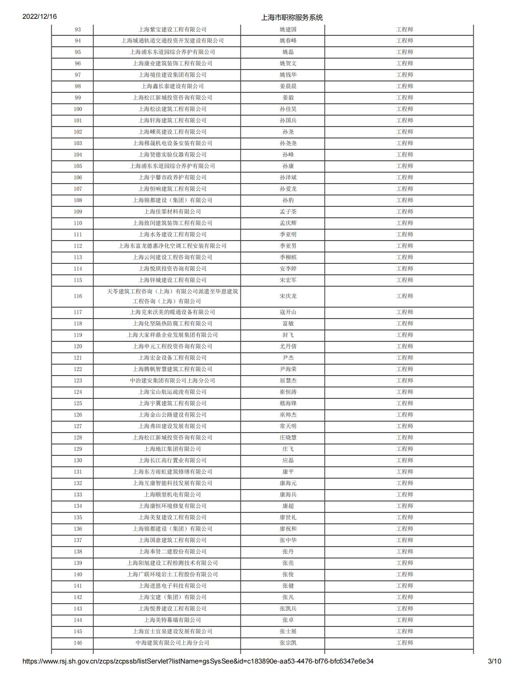 2022年度上海市工程系列機電專業中級專業技術職務任職資格第三評審委員會(嘉定)評審通過人員名單公示