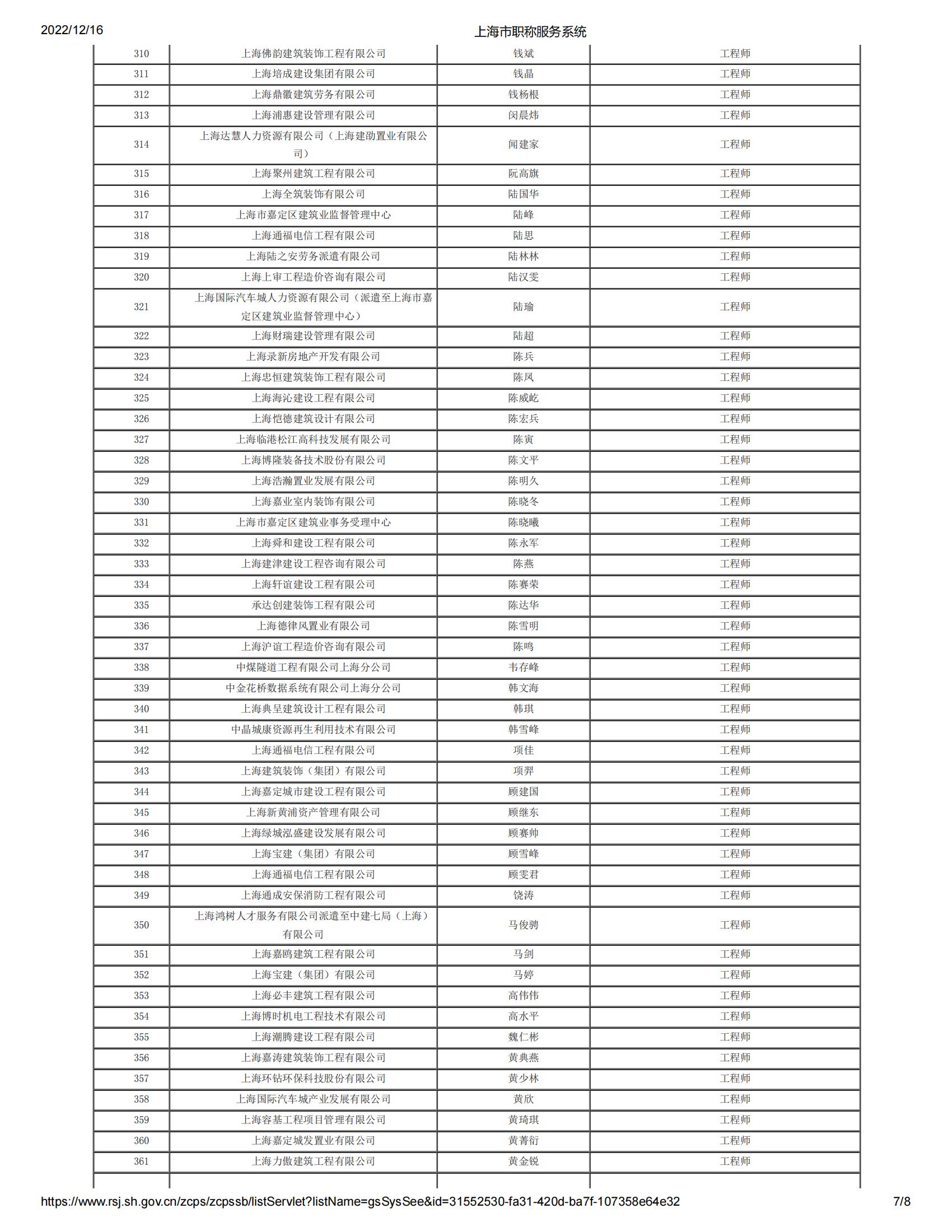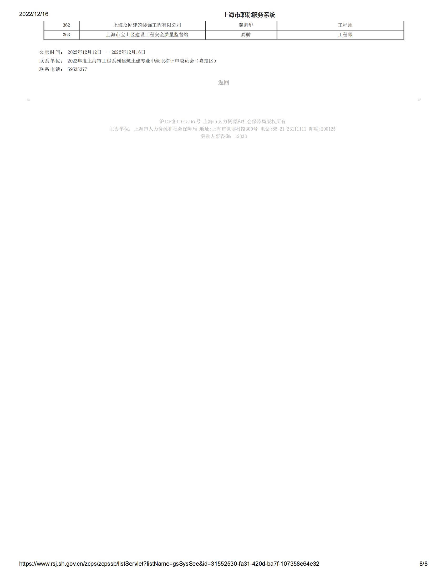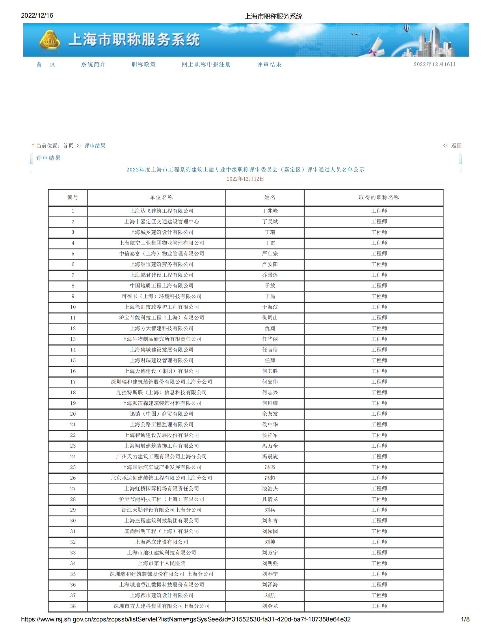2022年度上海市工程系列建筑土建專業(yè)中級(jí)職稱評(píng)審委員會(huì)(嘉定區(qū))評(píng)審?fù)ㄟ^人員名單公示