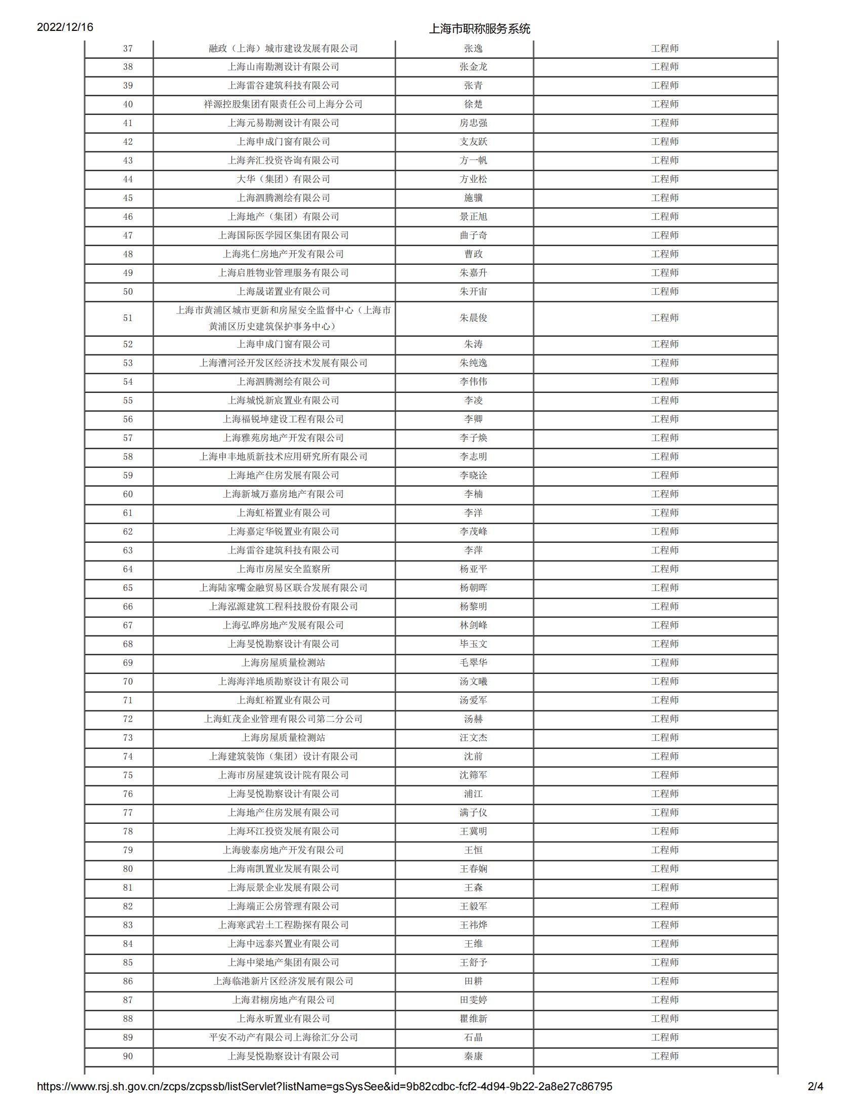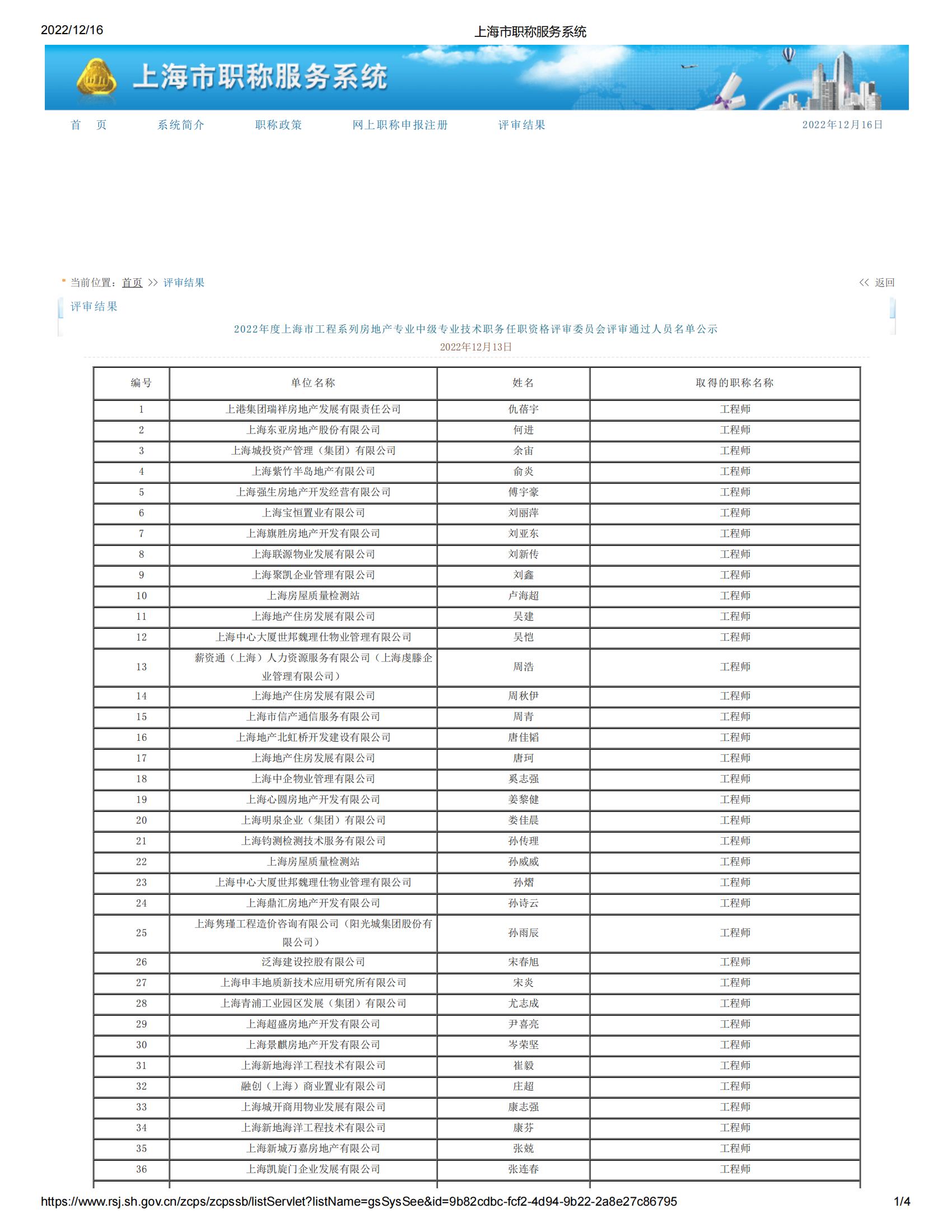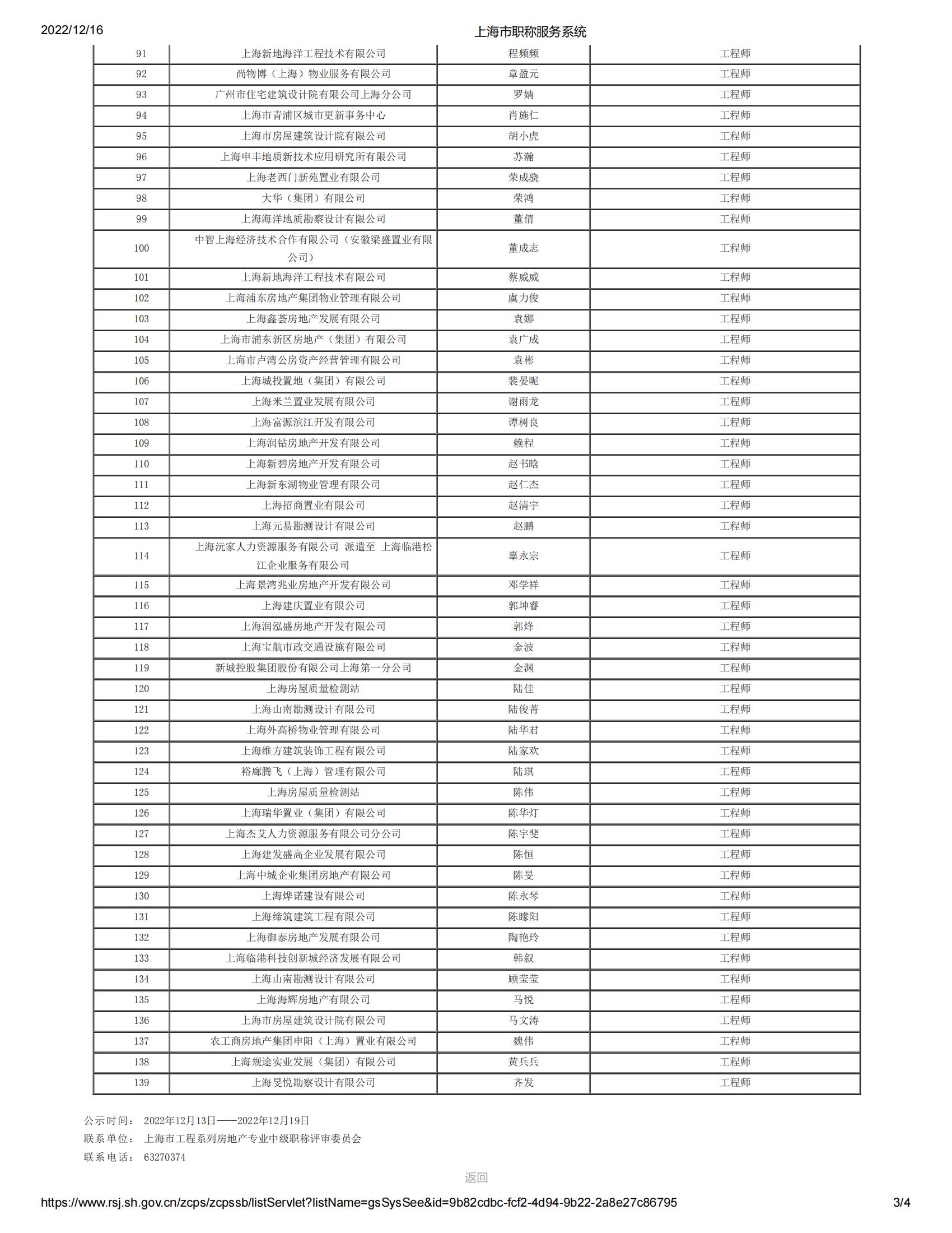 2022年度上海市工程系列房地產專業中級專業技術職務任職資格評審委員會評審通過人員名單公示