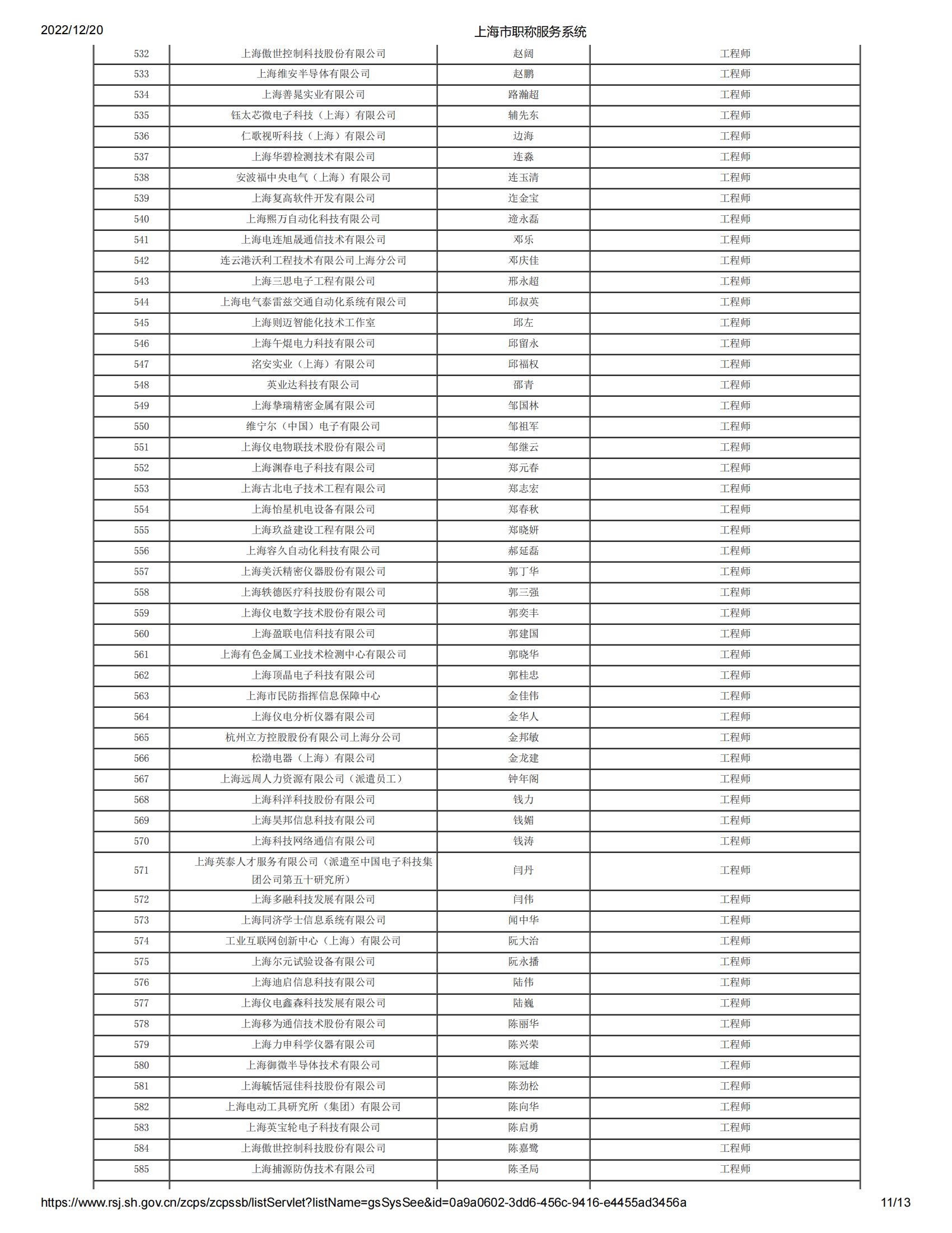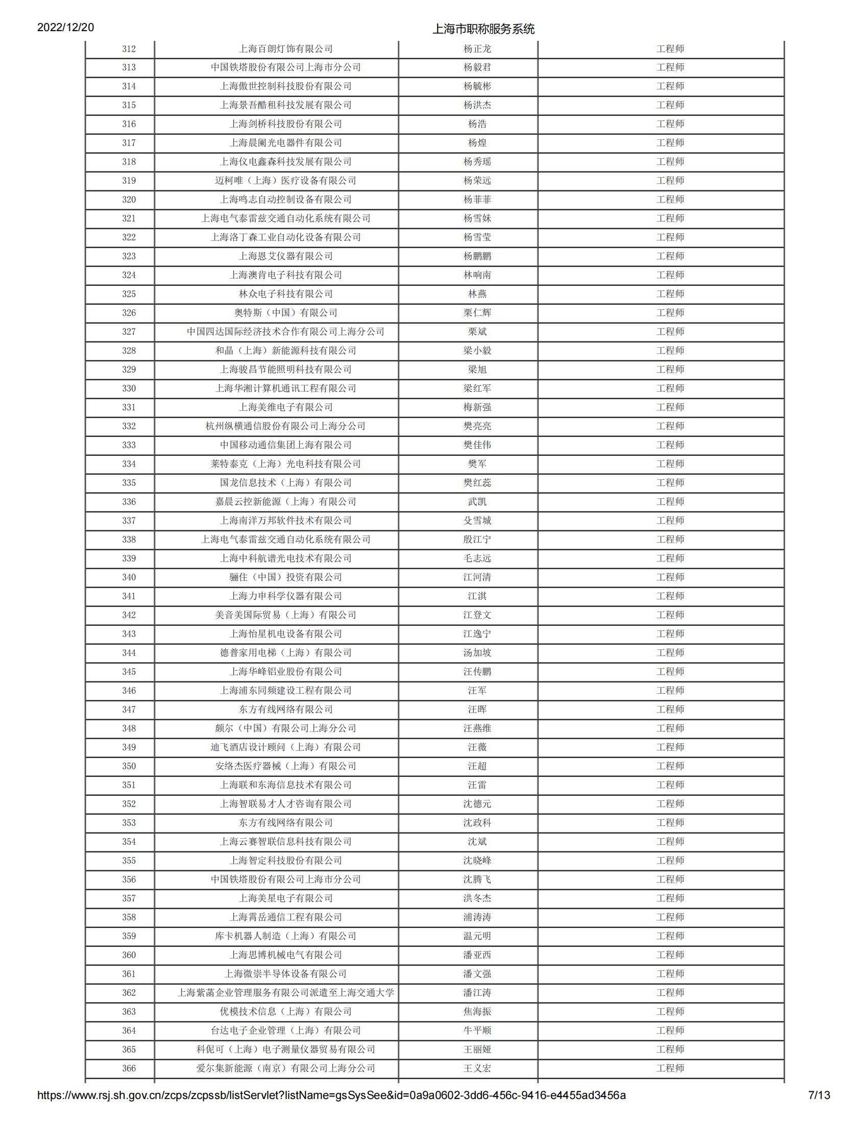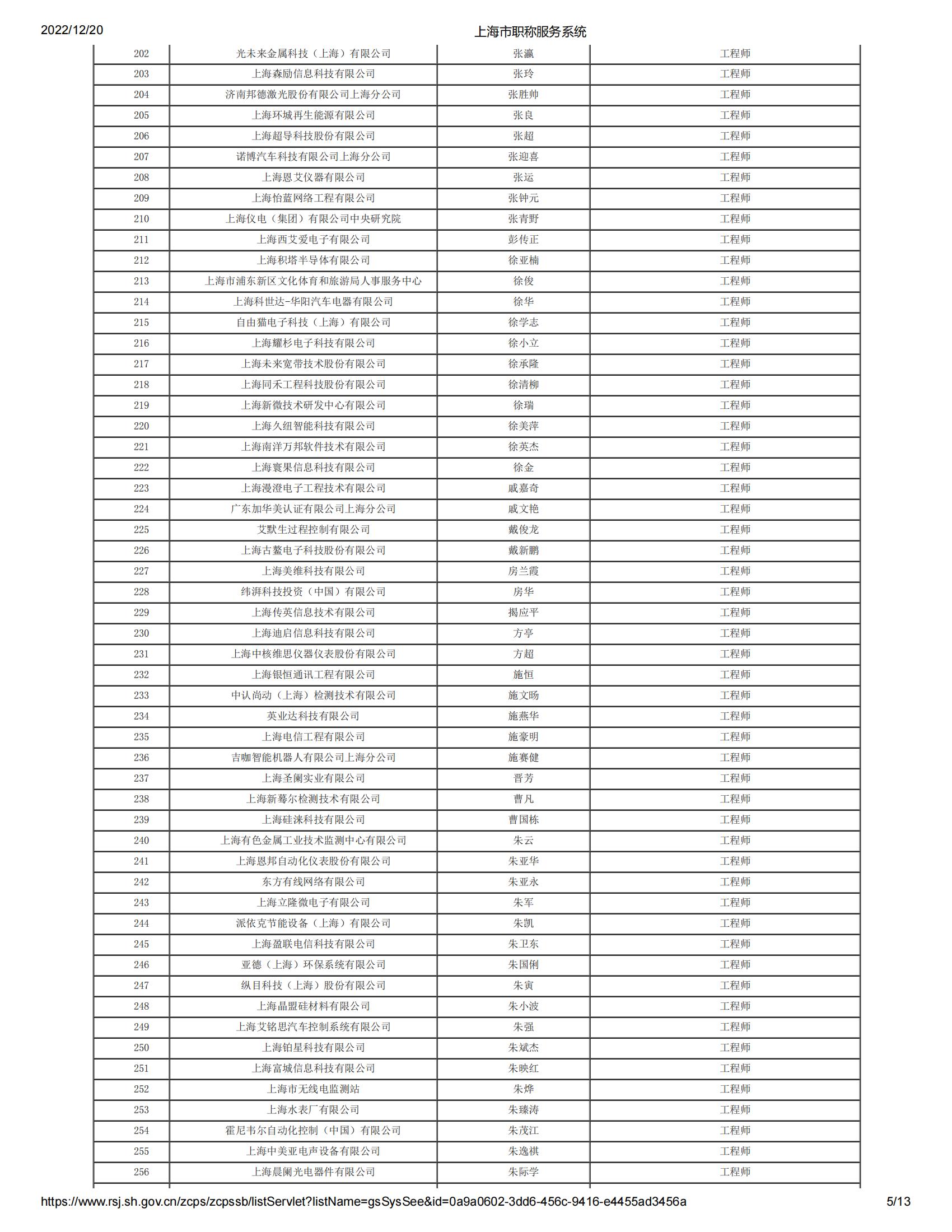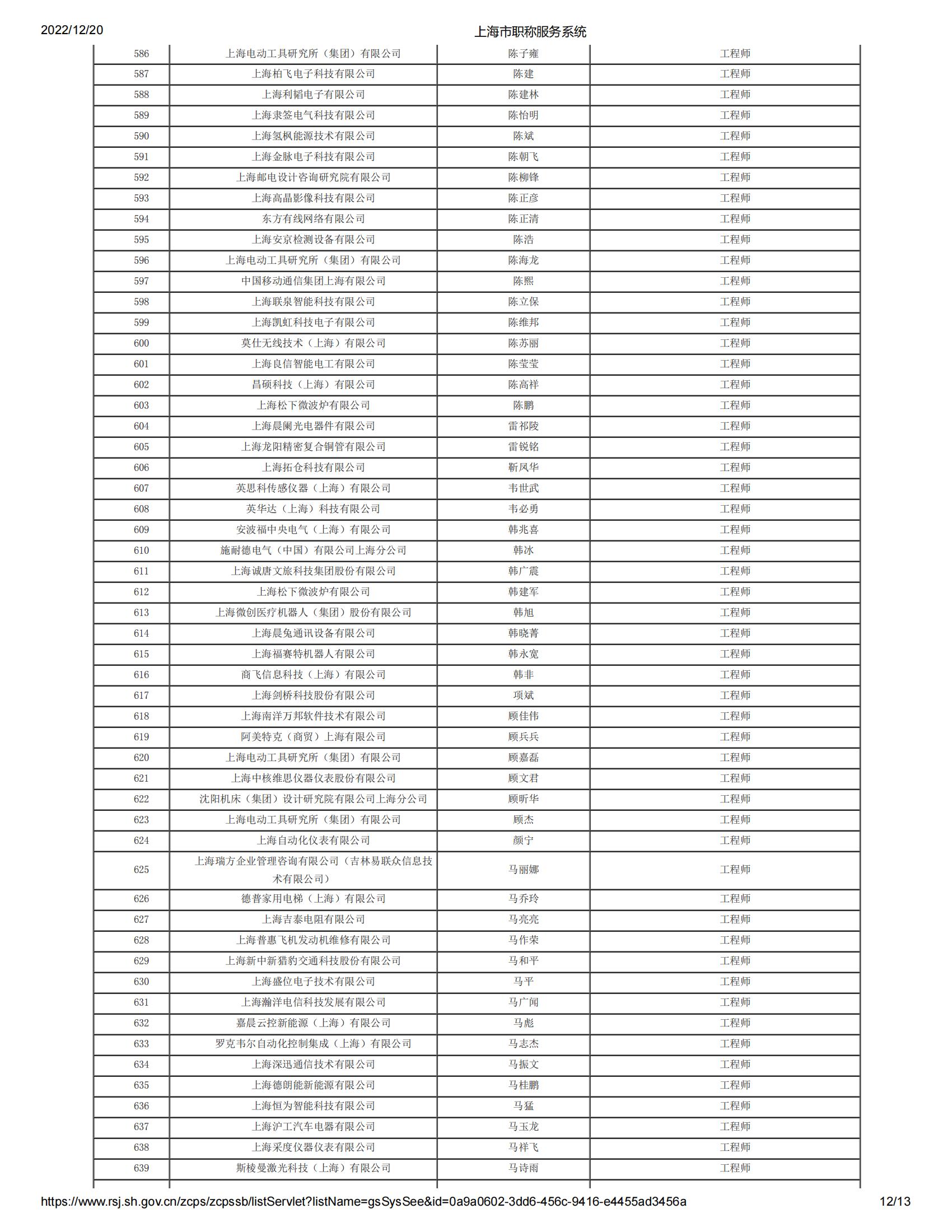 2022年度上海市工程系列儀表電子專業(yè)中級專業(yè)技術(shù)職務(wù)任職資格評審委員會評審?fù)ㄟ^人員名單公示