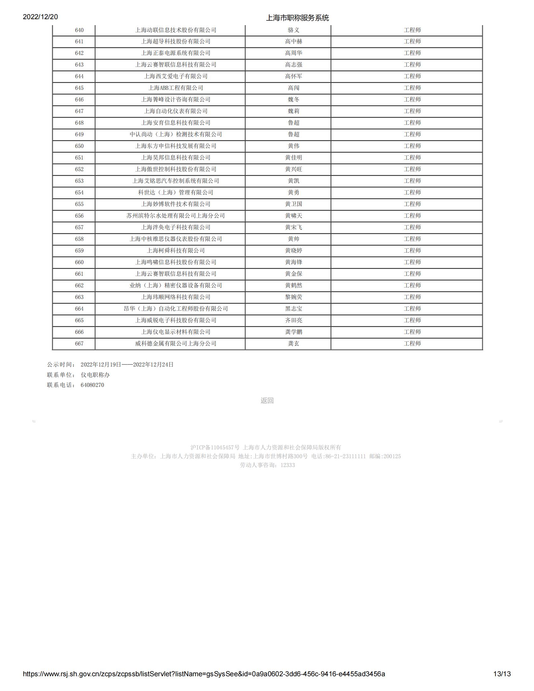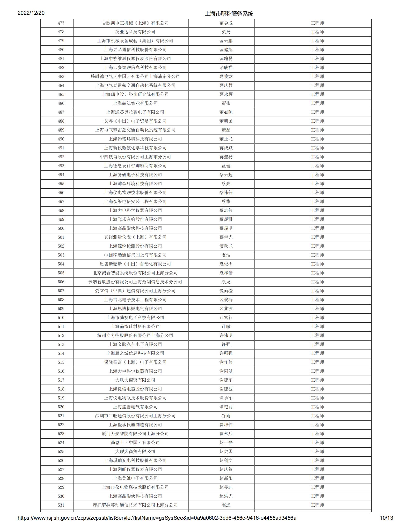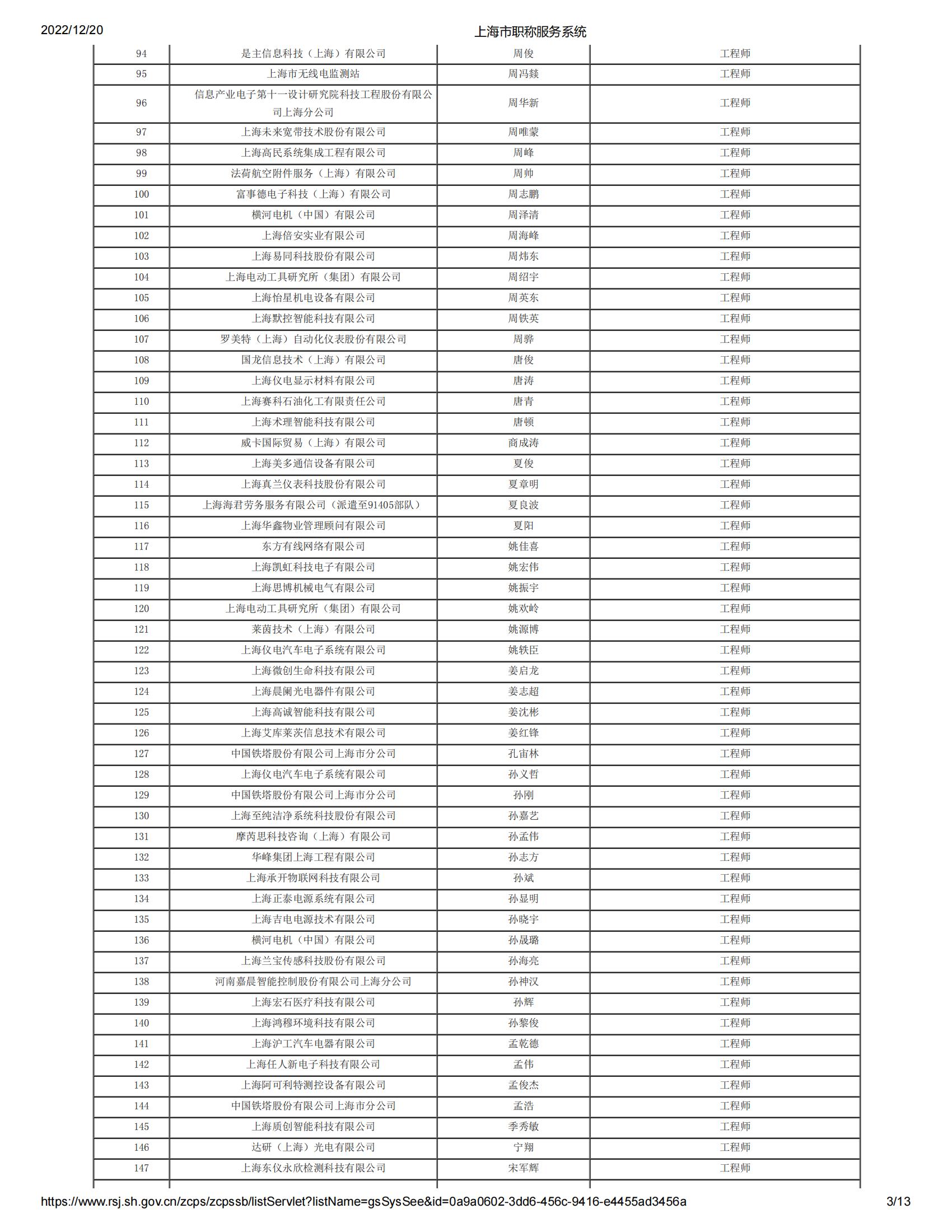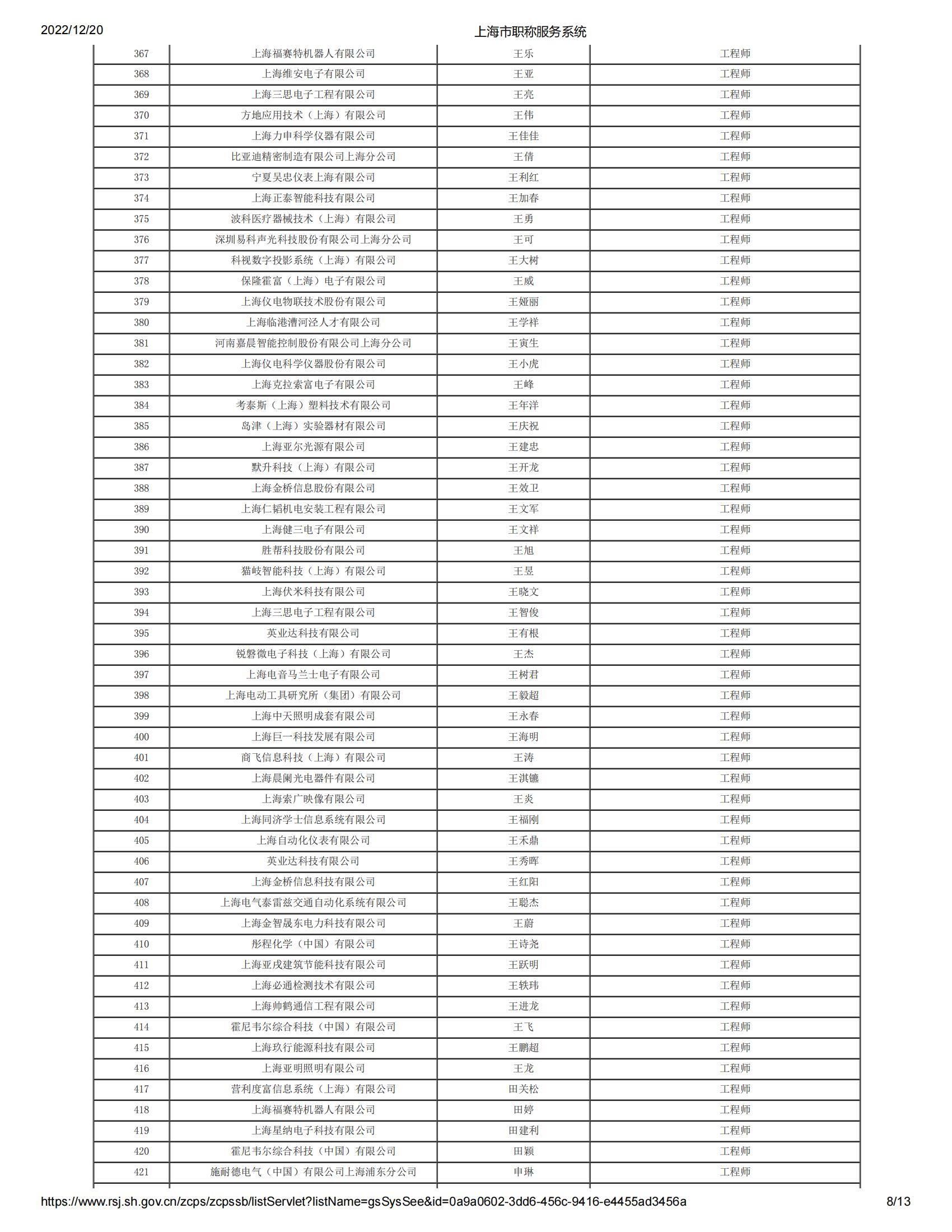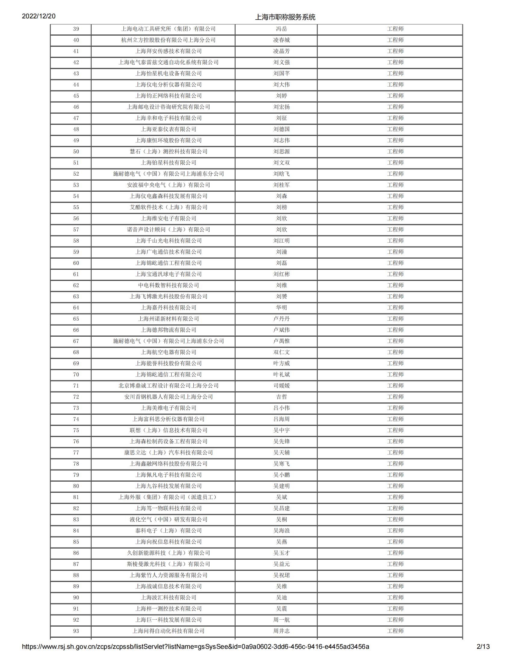 2022年度上海市工程系列儀表電子專業(yè)中級專業(yè)技術(shù)職務(wù)任職資格評審委員會評審?fù)ㄟ^人員名單公示